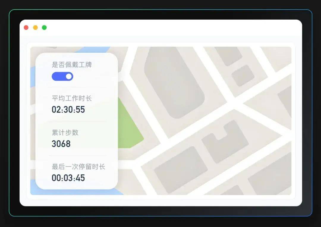 采用北斗+GPS +LBS(须付费)多重融合定位技术,实现室内外定位与轨迹可视化,外勤人员位置实时可查。融合三轴传感技术,智能感知设备佩戴状态与人员移动情况,让试驾路线、上门服务路径、外勤拜访轨迹一目了然,杜绝虚假打卡与脱岗。